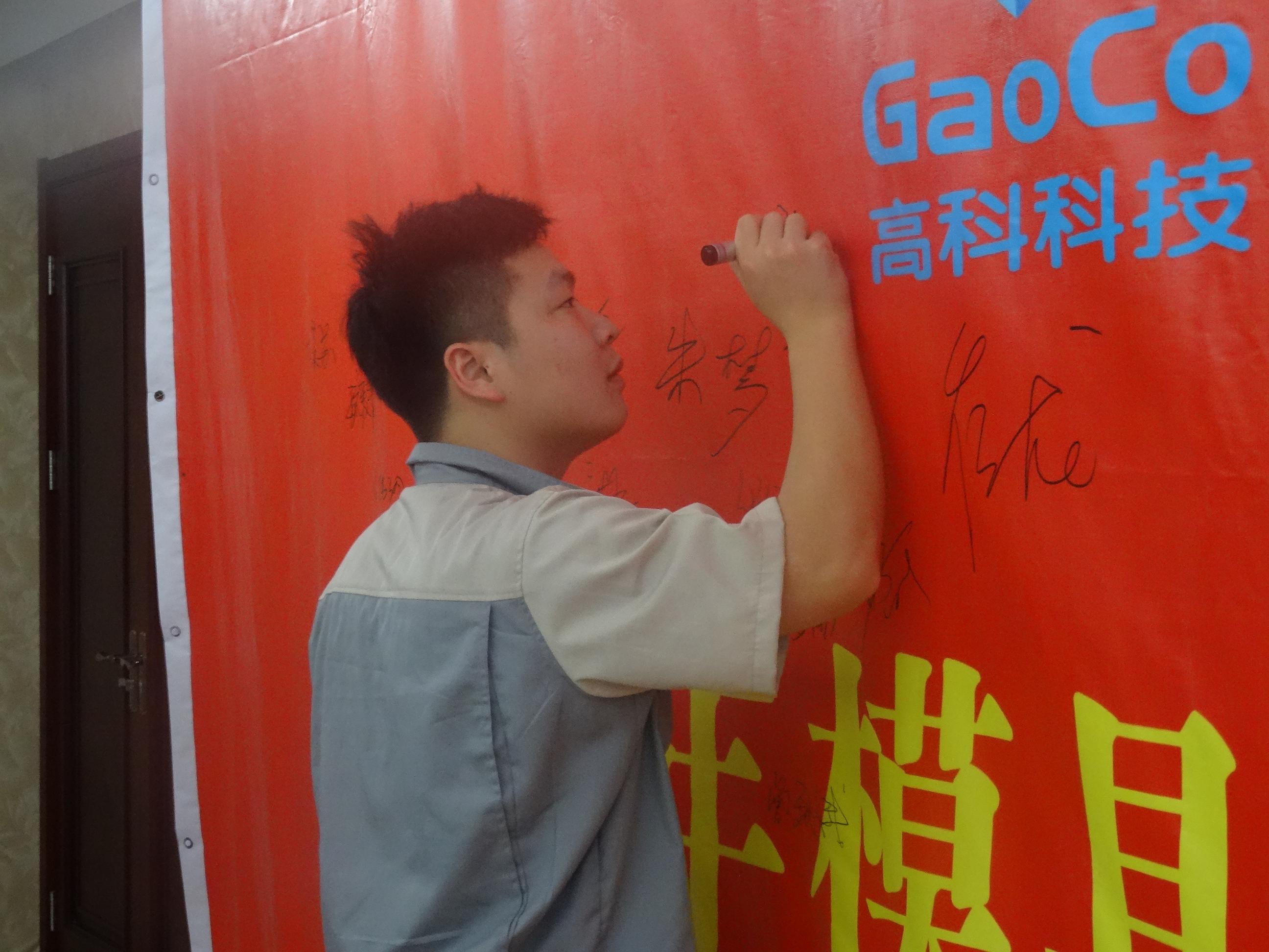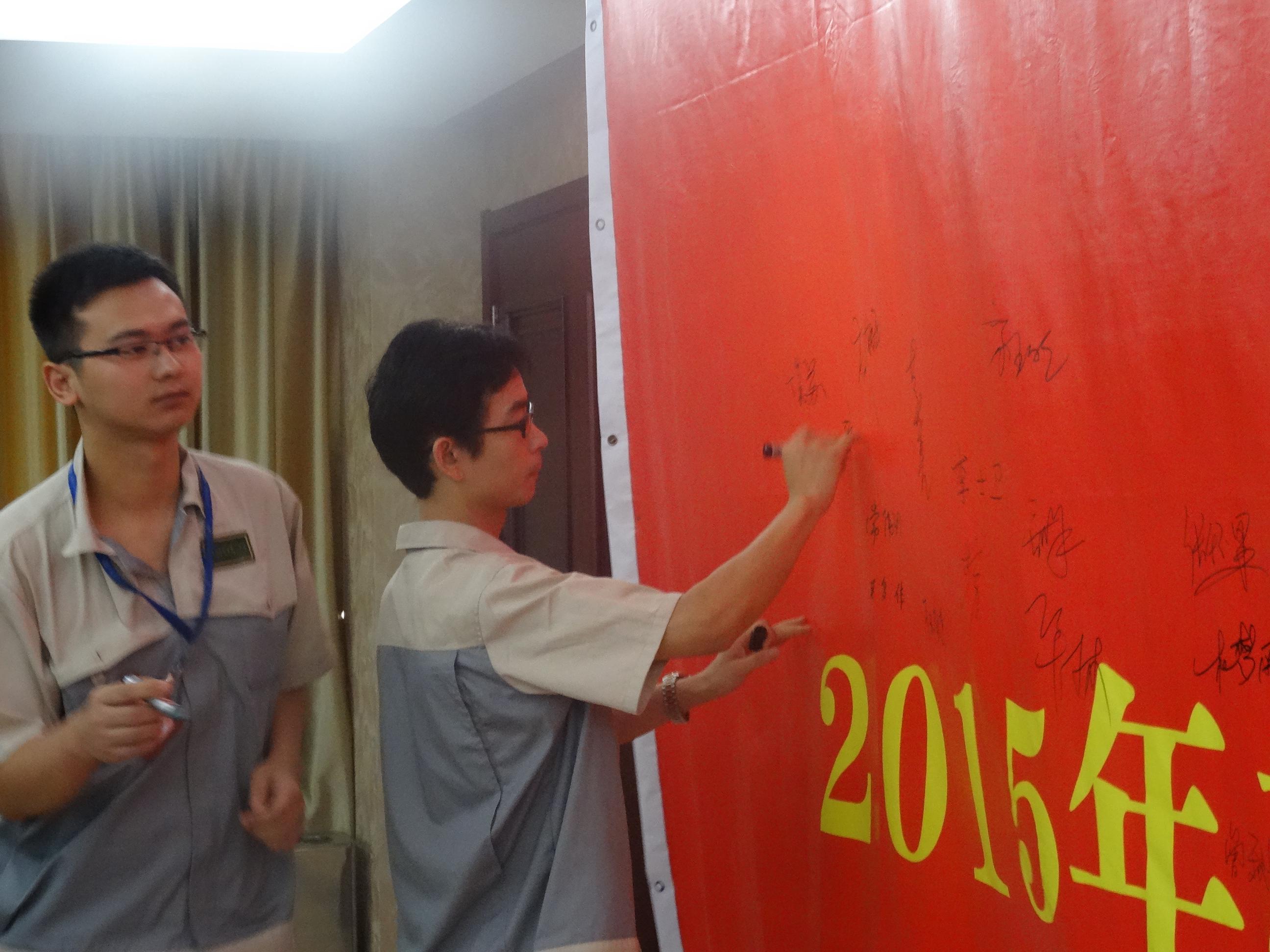 隨后模具事業(yè)部丁部長帶領全體人員進行安全生產月宣誓,并在誓師大會橫幅上簽名。