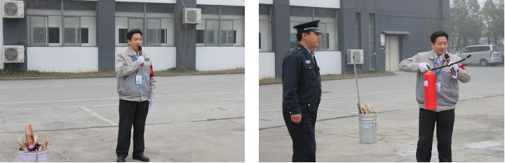 現(xiàn)場模擬了幾個著火點,當(dāng)發(fā)生火情時,員工們拿著滅火器按照講解的操作流程與滅火方法對火源進行噴射、滅火。