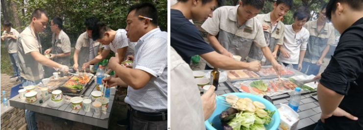 按照此次活動(dòng)的預(yù)先安排 10:00部門人員在園內(nèi)燒烤點(diǎn)集合,組織趣味燒烤大比拼。大家開(kāi)始分工起來(lái),擇菜的擇菜,配料的配料,各司其職,各組大廚紛紛閃亮登場(chǎng),一較高下,好不熱鬧……