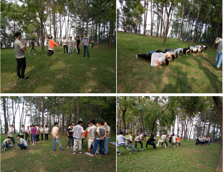 隨著溫度的上升,我們的熱情也升高起來(lái),大家放松一切,拋開(kāi)一切,都投入到了活動(dòng)中來(lái),所以,集體不僅是團(tuán)結(jié)力量,同時(shí)也是最好的壓力釋放,一個(gè)人那只能叫發(fā)泄。這不,有人開(kāi)始已經(jīng)跳動(dòng)起來(lái)了。集體跳繩是節(jié)奏感很強(qiáng)的運(yùn)動(dòng),需要大家整齊劃一,配合默契。我們進(jìn)行了A、B分組,A組由陳少鋒帶隊(duì),B組由孫勇帶隊(duì),裁判張四全。在規(guī)定時(shí)間內(nèi)哪個(gè)隊(duì)跳的多則獲勝。B組以94跳的成績(jī)贏得了本次跳繩比賽。A組則表示:重在參與,接受懲罰:俯臥撐,但我們強(qiáng)烈建議再來(lái)一局,意猶未盡啊。在A組的建議下,臨時(shí)增加了拔河比賽,各組長(zhǎng)開(kāi)始給組員講解取勝方法及要點(diǎn)。最終A組取勝。