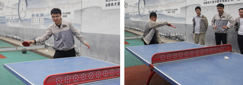 乒乓球是中國的國球,在臨近五一的活動中,怎么可能缺少呢,安排。參賽的共有8人,抽簽分組,小局11球,一局定勝負,整個比賽過程中,打的難解難分,比分咬的非常緊,十分的緊張和刺激。